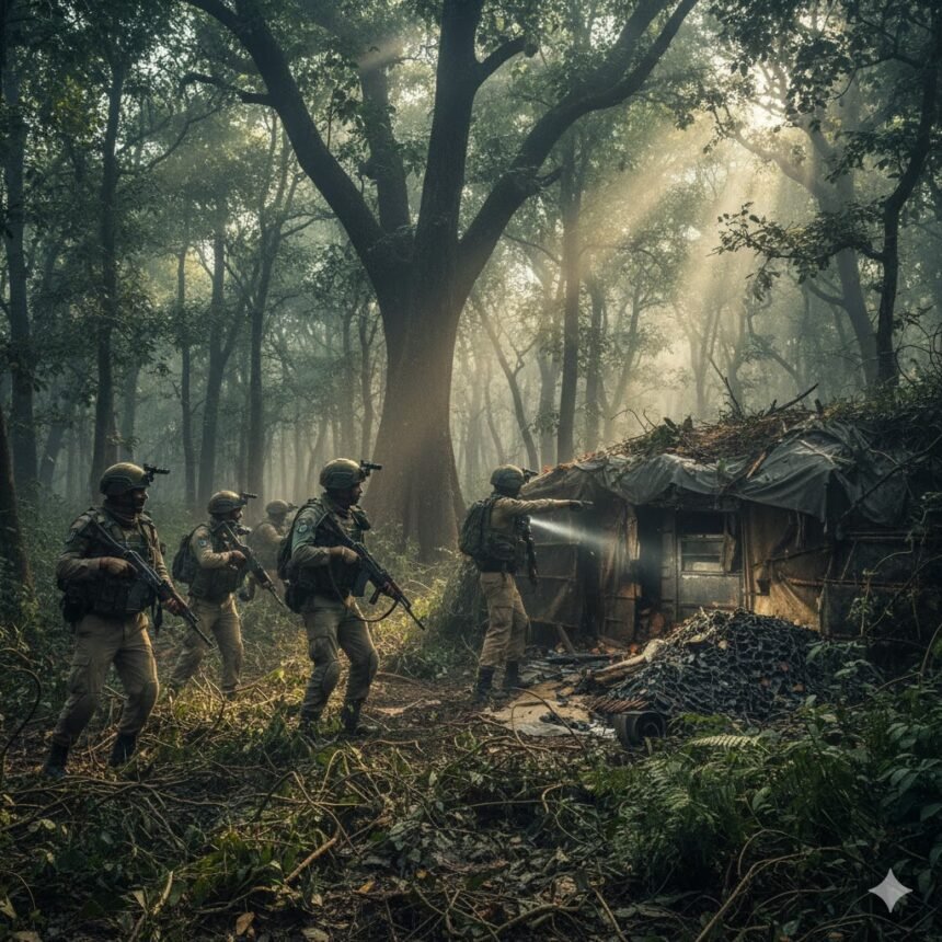 • भारी मात्रा में आधुनिक हथियार और विस्फोटक सामग्री बरामद।