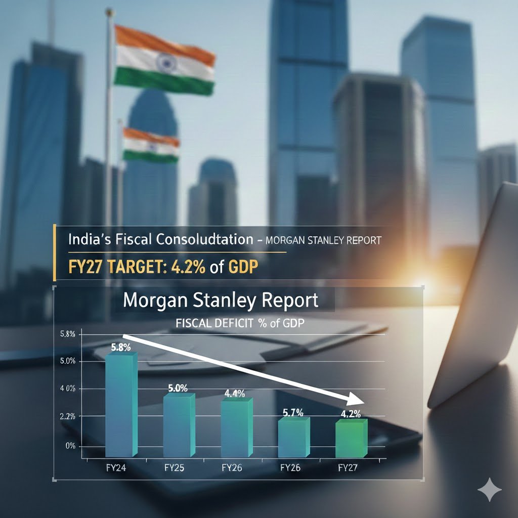 भारत की अर्थव्यवस्था के लिए खुशखबरी: FY27 में राजकोषीय घाटा घटकर 4.2% रहने का अनुमान – मॉर्गन स्टेनली रिपोर्ट