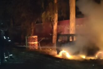 कानपुर: नेशनल हाईवे पर चलती कार बनी आग का गोला, चालक ने कूदकर बचाई जान